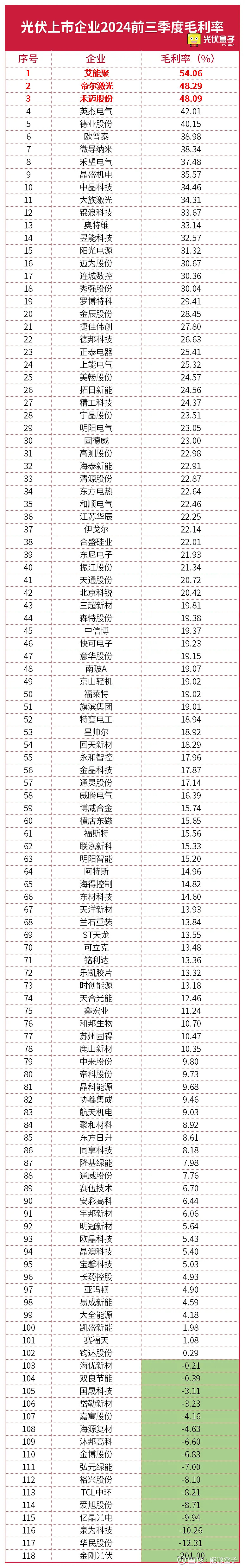 2.光伏企业2024前三季度归母净利润TOP10: