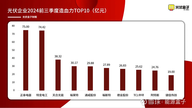 其中,前三季度造血力前十名的光伏企业分别是:宁德时代、紫金矿业、比亚迪、洛阳钼业、深圳能源、特变电工、中国动力、正泰电器、东方电气、赣锋锂业。