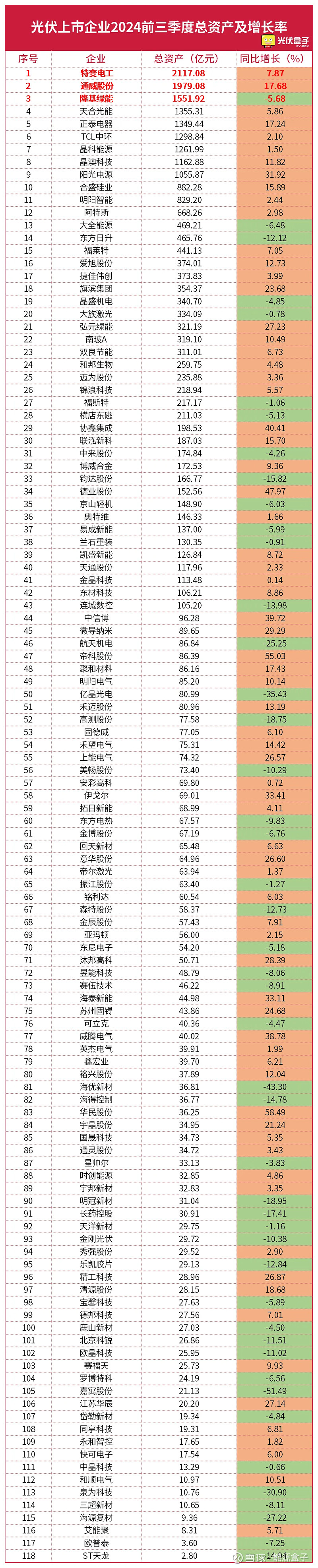 3.光伏企业2024前三季度总资产TOP10: