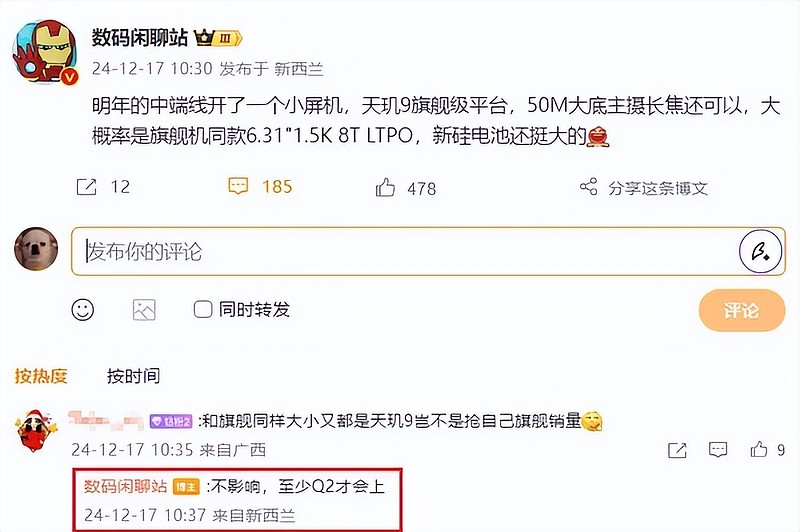 结合当前的爆料情况来看,该博主所说的中端小屏机,从诸多特征和配置方面进行分析,大概率就是来自 vivo 的中端小屏机,这一点几乎毫无疑问。有网友对此表达了担忧,认为新的中端小屏机“和旗舰同样大小又都是天玑 9,岂不是会抢自己旗舰销量”?面对这样的顾虑,该博主迅速作出回复:“不影响,至少 Q2 才会上”。从一系列的爆料信息综合判断,vivo 这款备受关注的小屏手机,至少会在明年 4 - 6 月份才会正式发布。而且,从目前的种种迹象推测,它可能会被命名为 vivo S Pro mini 系列。这一命名方式,也预示着它或许会继承 vivo S 系列的某些优秀基因,为用户带来全新的使用体验。