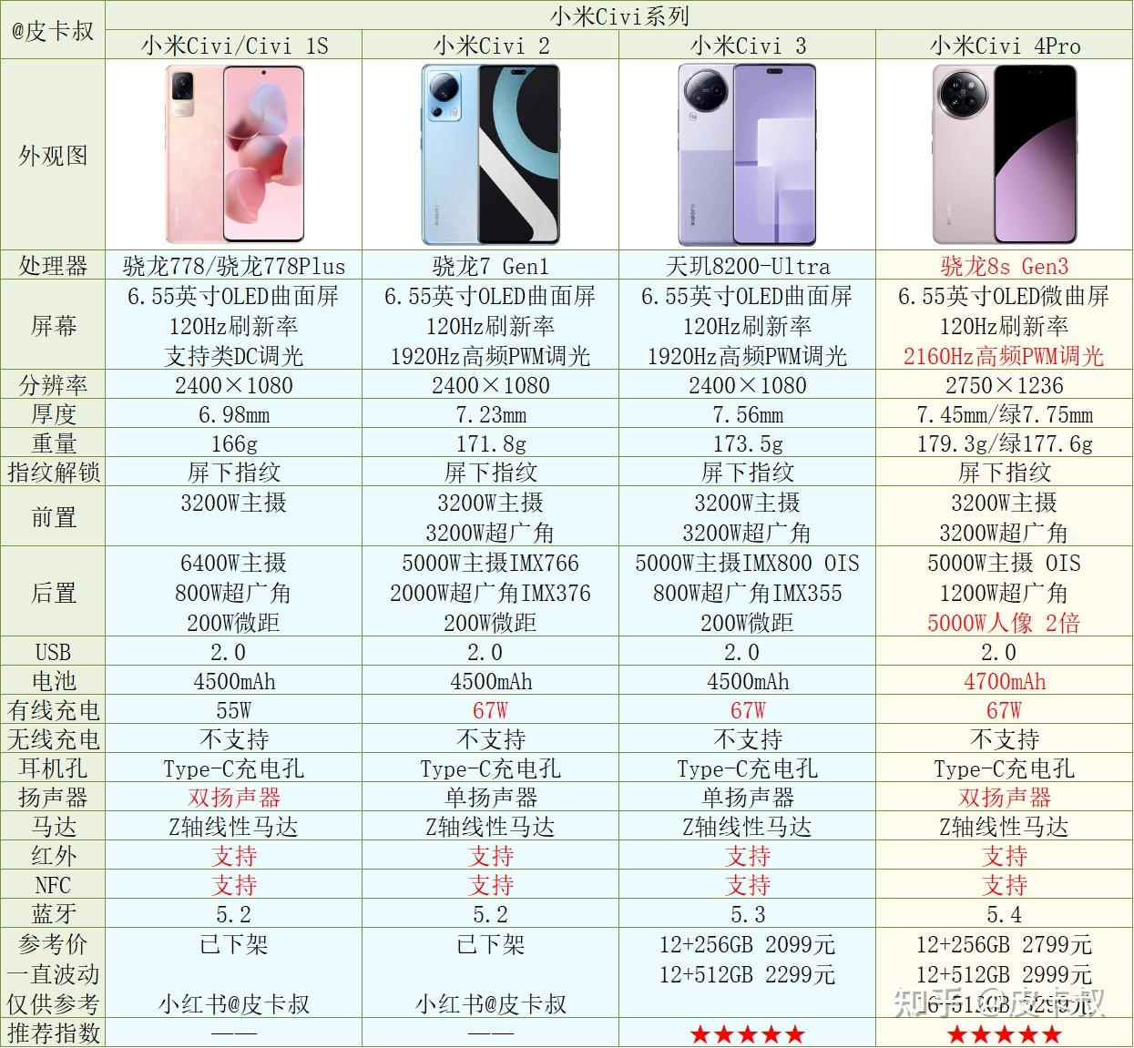 二、小米Civi系列(2000-3000元)小米Civi系列主打轻薄高颜值以及自拍,主打女性市场。