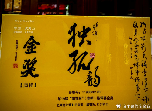 自古诗云:“绝壁岩崖生國寶,紅袍狀元聖上加”、“御赐红袍岩韵袅,人间玉椀漾朱壽”。岩茶“老字号”风云庄、风云茶业产业研究院荣获2022茗茶博览会金奖 —— 獨孤太玄(金奖肉桂6號),獨孤韻又曰“独孤韵”(金奖肉桂7號)被誉为岩茶肉桂一类中的极致之上品。