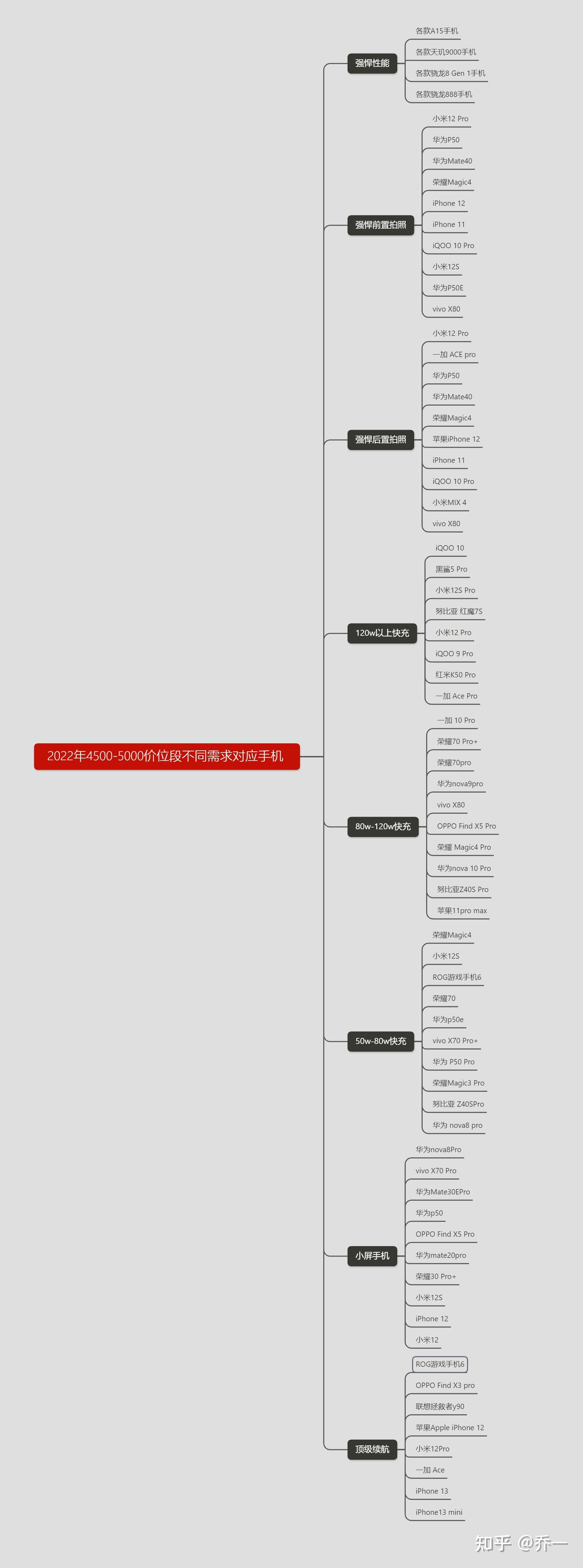 四、不同需求对应手机(注:每种性能从下往上越来越好)