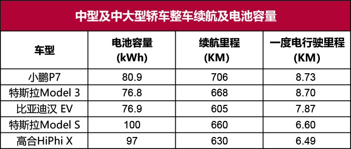 可以看到,目前市场上这一级别的车型还是比较少的,即便把Model S以及刚发布的HiPhi X都算上,符合条件的也仅有5款车型。在这五款车型中,小鹏P7以每度电多跑0.03公里的优势险胜Model 3,成为了全场最佳。至于Model S以及高合HiPhi X,因为车身尺寸较大质量较大的原因,一度电能跑的距离都不算太长。但那又如何呢?毕竟也没有什么V12车主会在乎油耗。