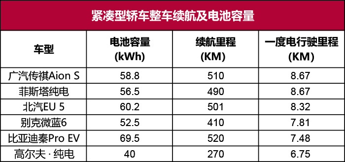 在这一时代背景之下,我们不妨来关注一个事关新能源车型,却又没有多少人关注的信息点——这些车型的一度电都能跑多少公里?作为购买电动车是较少人关注的信息点,一度电的情况下能够行驶的距离,其成绩一定程度上体现了整车三电技术的水平以及空气动力学设计的优劣。那么问题来了,目前市面上常见的纯电动车型一度电都能跑多少公里?同一级别的车型中,哪辆车能够成为“效率之王”之王?为了探索这个问题,我们收集了各个级别的主流纯电动车型NEDC续航里程及电池容量数据,看看在工信部数据面前,到底谁才是同级第一。
