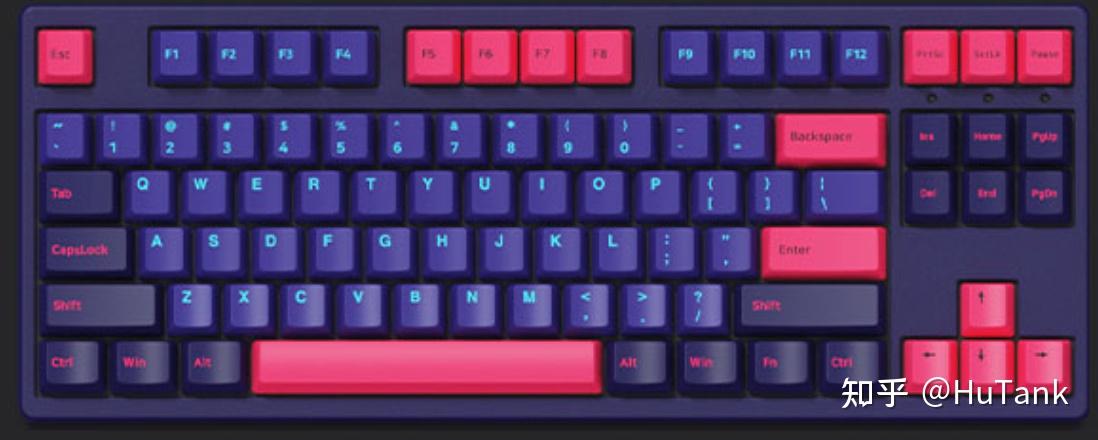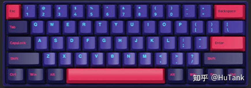 87键60%配列——61/64/68键位:这种键盘非常小巧,适合需要移动办公经常携带键盘的同学,我发现我司程序员有几位也用的是这种配列键盘,应该是他们敲代码不需要上方F区功能键和右侧数字键。
