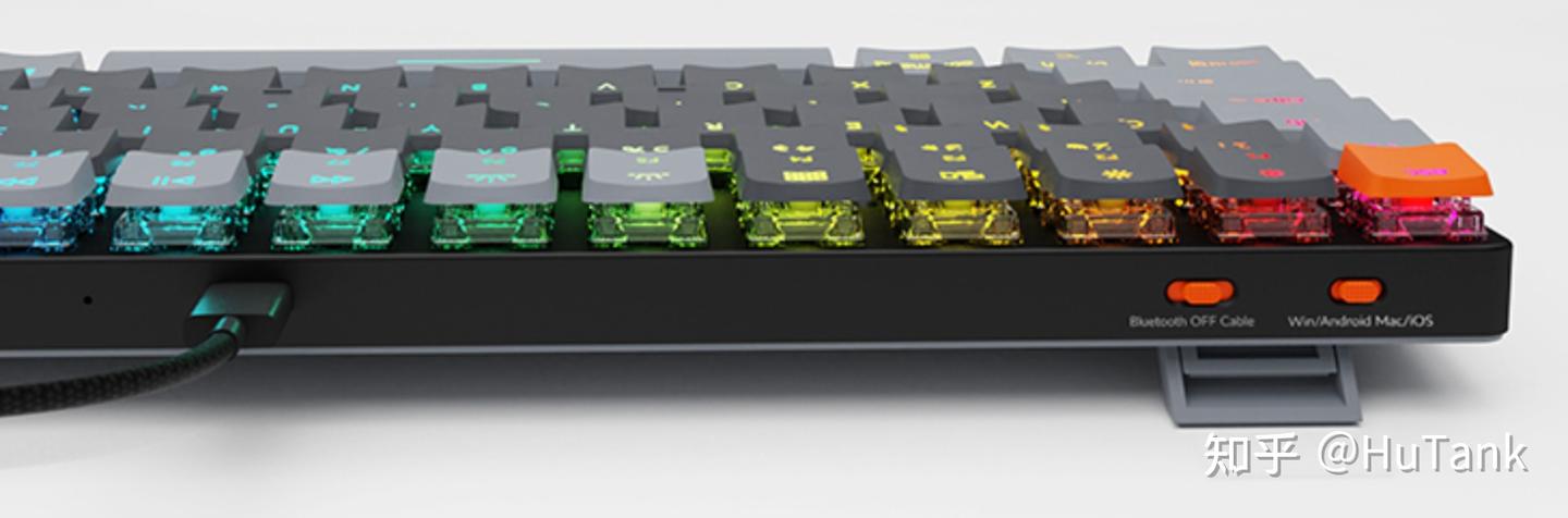 无线2.4G:无线2.4G连接需要在电脑上插一个usb接收器,然后键盘就可以搜索到这个信号和电脑进行连接,和无线鼠标使用方式一致,优势是比蓝牙连接响应速度快,玩游戏的话基本也不会有延迟且更省电,缺点就是如果你的笔记本电脑没有usb接口,比如我自己的mac,如要要用无线2.4G连接还得外接一个扩展坞,不如蓝牙键盘方便。