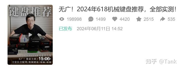 大家好,我是 @Tank ,实测上百把机械键盘的数码外设博主,知乎认可的外设话题下优秀答主。