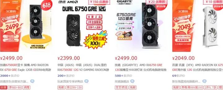 如果预算紧张,或咱就是香打游戏的、你不玩生产力或AI瑟瑟。完全可以考虑6750GRE 12G显卡,满足2K分辨率下,中高画质畅玩主流3A!