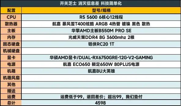配上6750GRE 12G显卡的机器也不会太贵,比如下面这套配置: