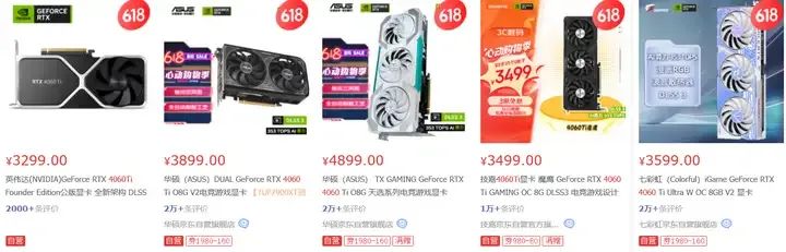 该显卡就是RX6750XT 12G的一个小换皮,不能说一模一样,只能说毫无差别,其性能对标英伟达2K分辨率的显卡RTX4060TI,来看看4060TI价格: