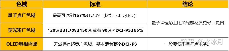 广色域:量子点广色域>DCI-P3 95% >荧光粉广色域 >DCI-P3 90%三款都是广色域电视。