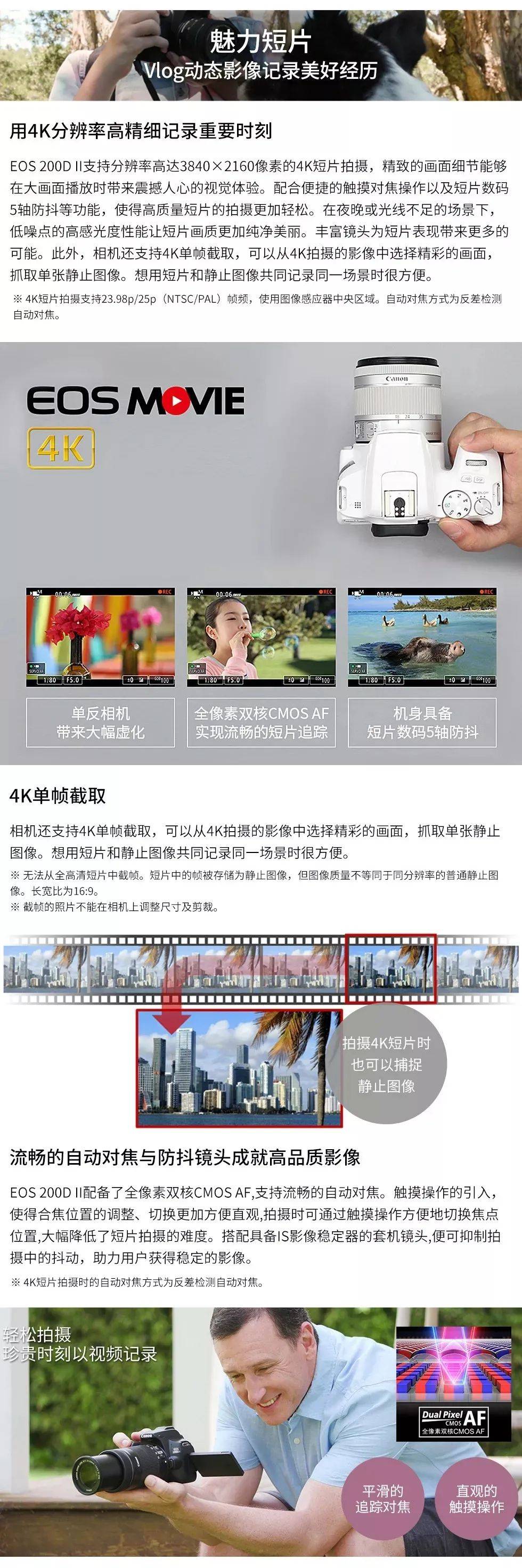 一)佳能200D二代:小巧、旋转触摸屏 、 4K超高清摄像