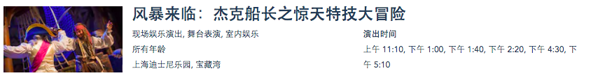 ③沉落宝藏之战:是一场有剧情的海盗船之旅,让你身临其境地进入了一场夺宝的电影中,其中从海底回到海平面的效果做的非常逼真,一定要体验下。