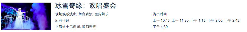 《冰雪奇缘》看了这个演出才去看电影,演出非常棒。带小朋友的更加不能错过,还有互动哦~2020年去的时候,演出也改良了,还加了雪花的场景,整个剧场飘满雪花,可想而知,小朋友们疯狂了。