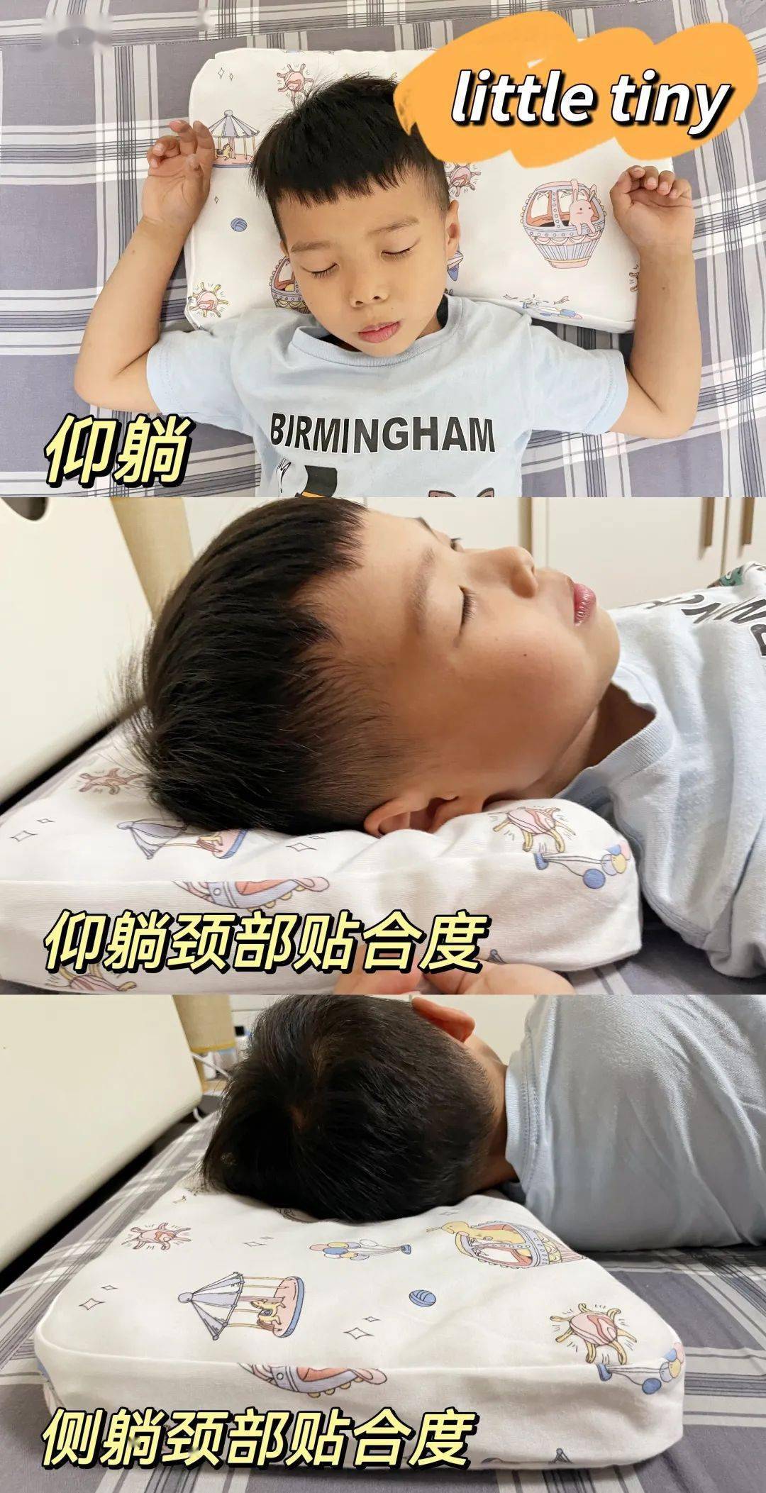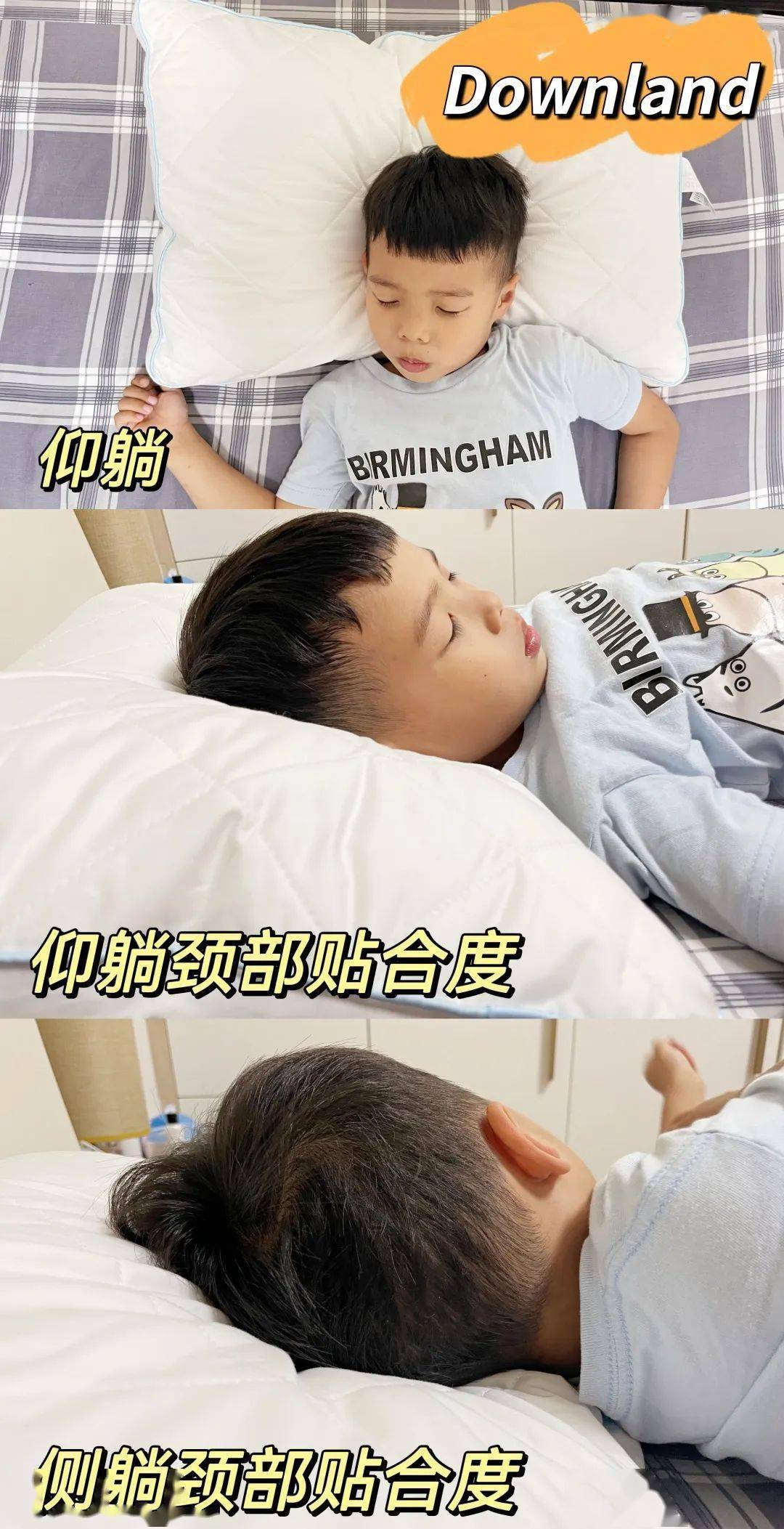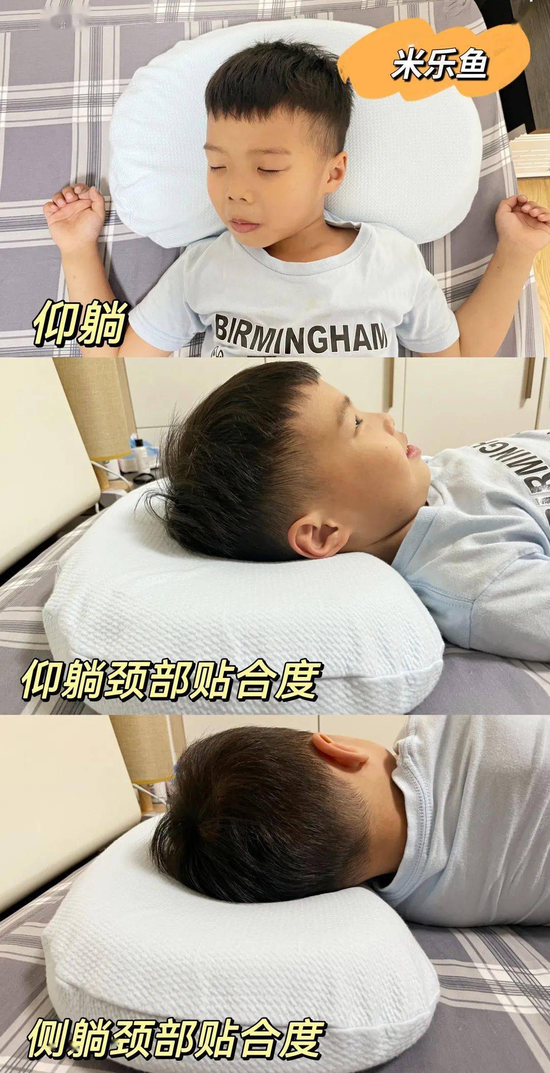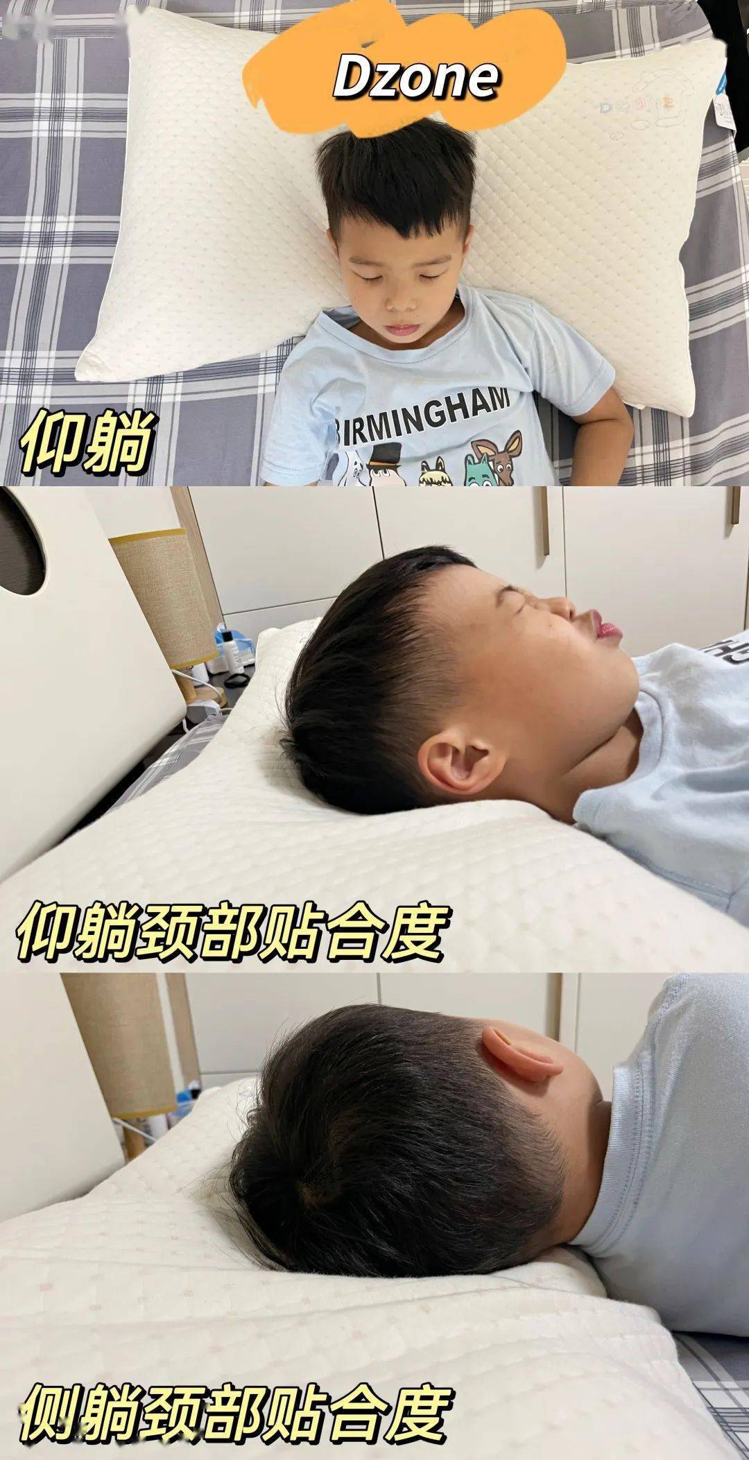 但是从测评过程来看,护颈分区对于孩子来说,要求过高了啊!小新在睡觉的时候免不了翻来覆去,有时是睡前平躺、醒来脚在枕头,有时则是趴着睡,睡相真的是千奇八怪,就是不在枕头中心,可太难了。▼