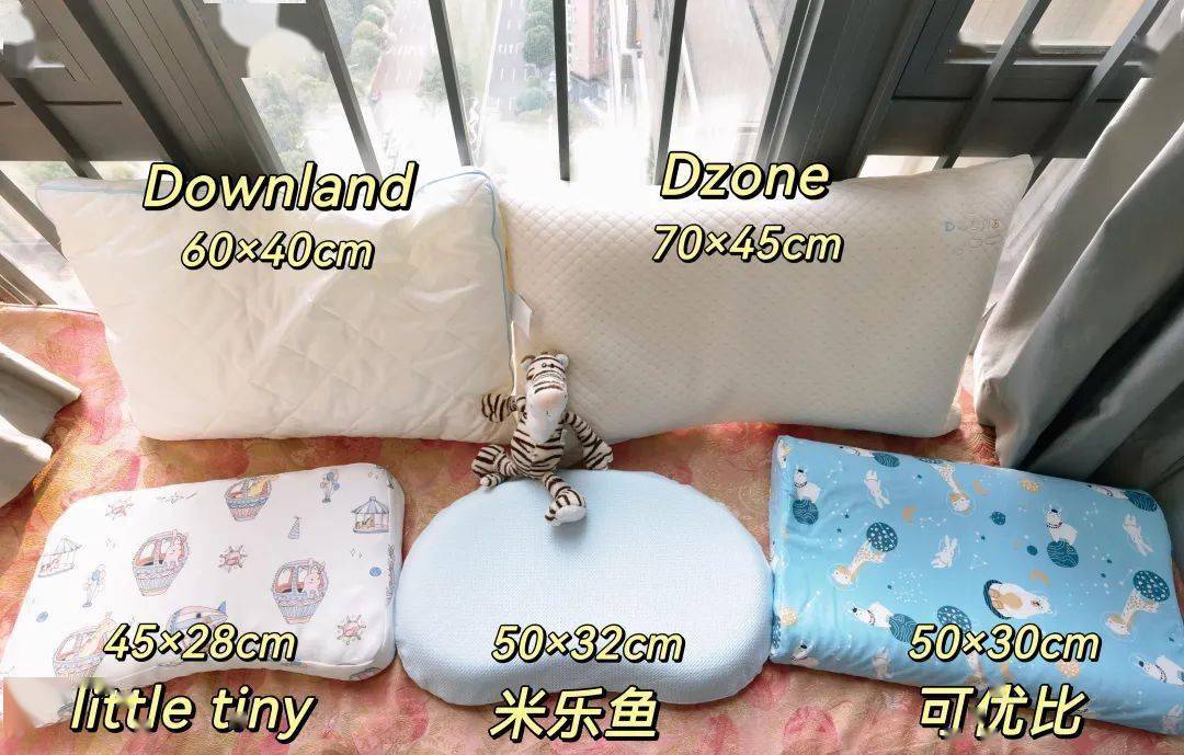 像我刚刚所说的,枕头就是让孩子稳稳睡觉不落枕,那么就肯定需要一个面积足够大的枕头,即便是睡觉不爱动的孩子,也免不了会左右翻身,大的枕头才能让孩子不会一翻身就掉枕。这次选择的五个枕头,Dzone最大,little tiny最小。▼