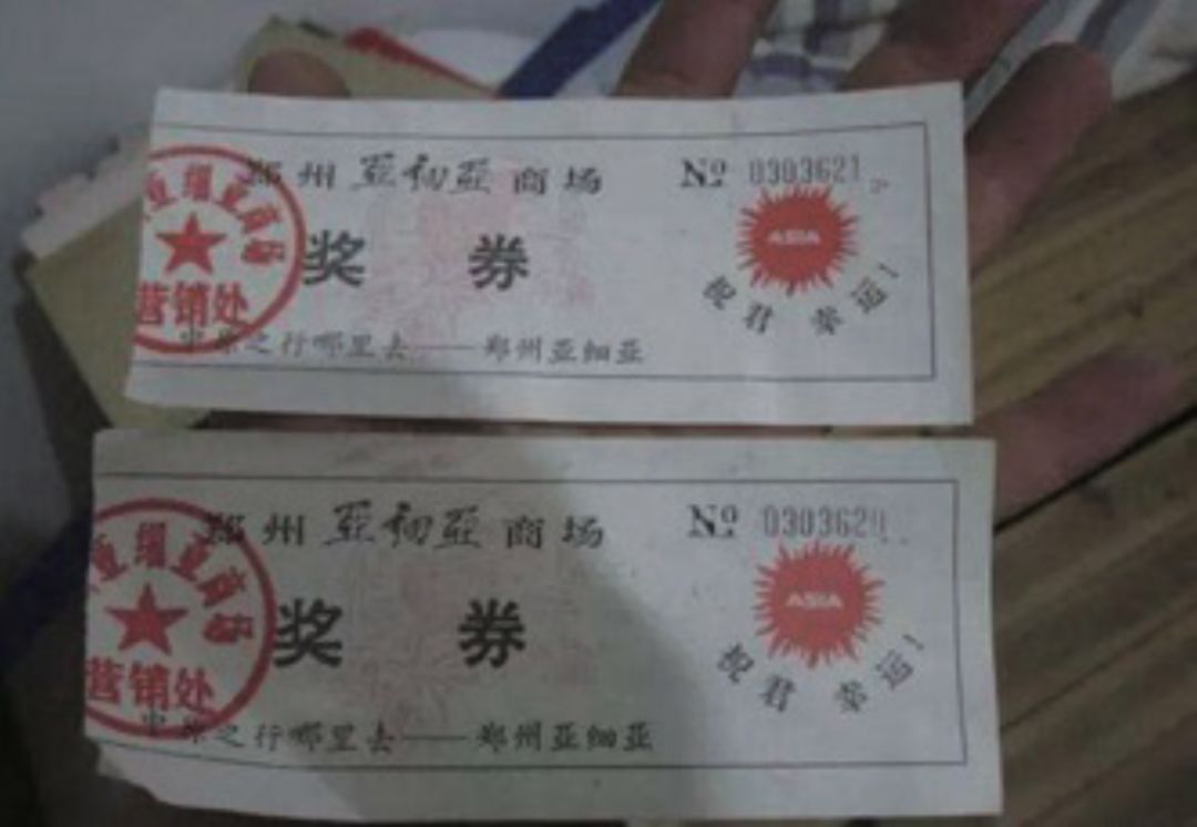 郑州亚细亚商场奖券,头奖为桑塔纳轿车