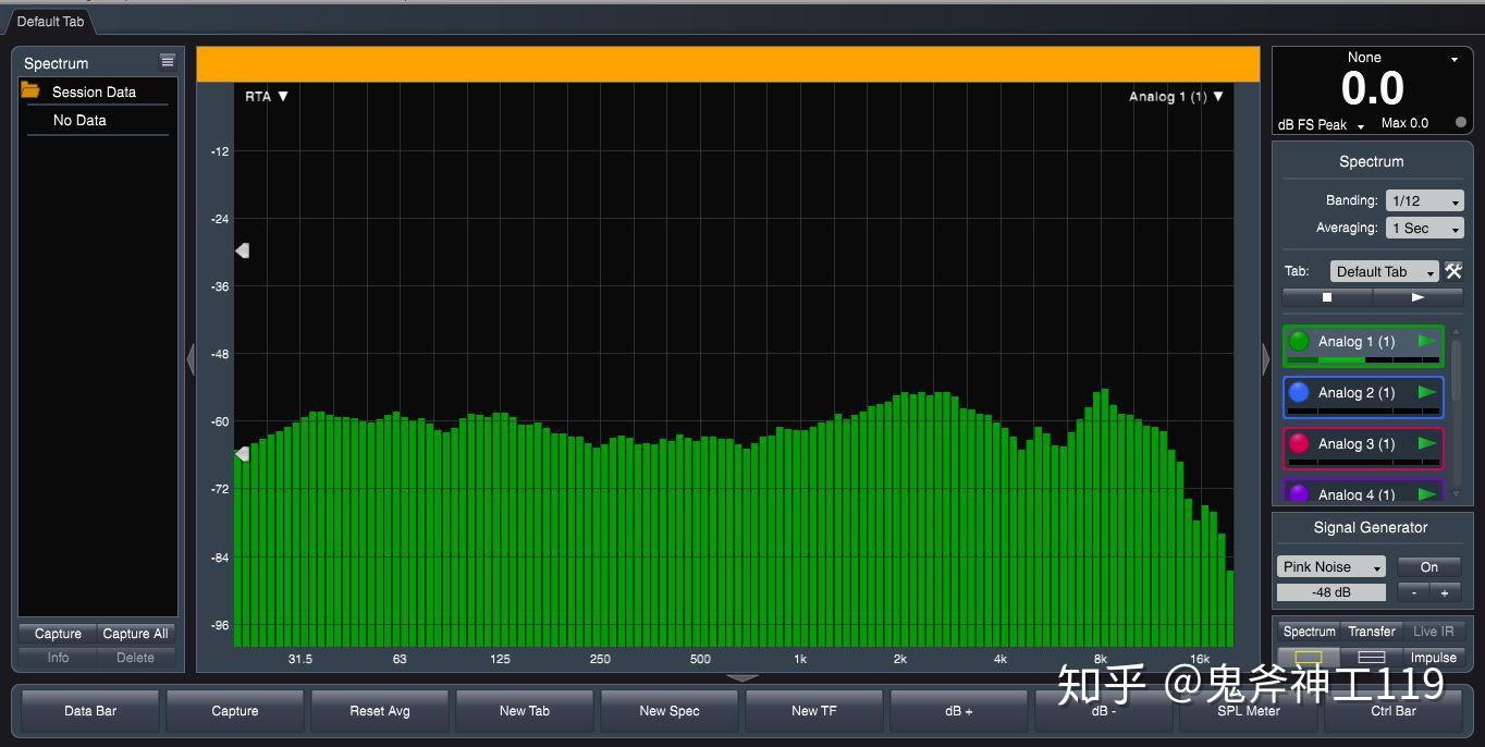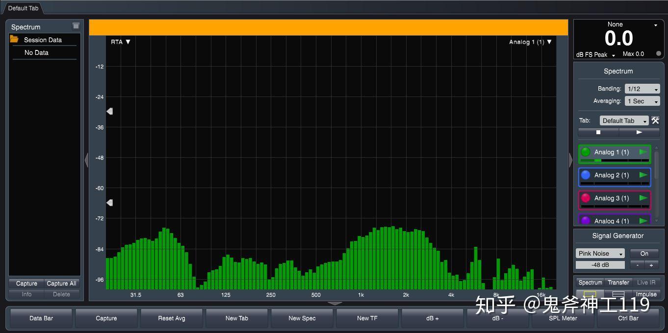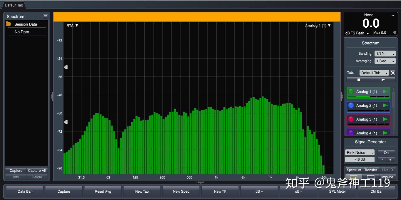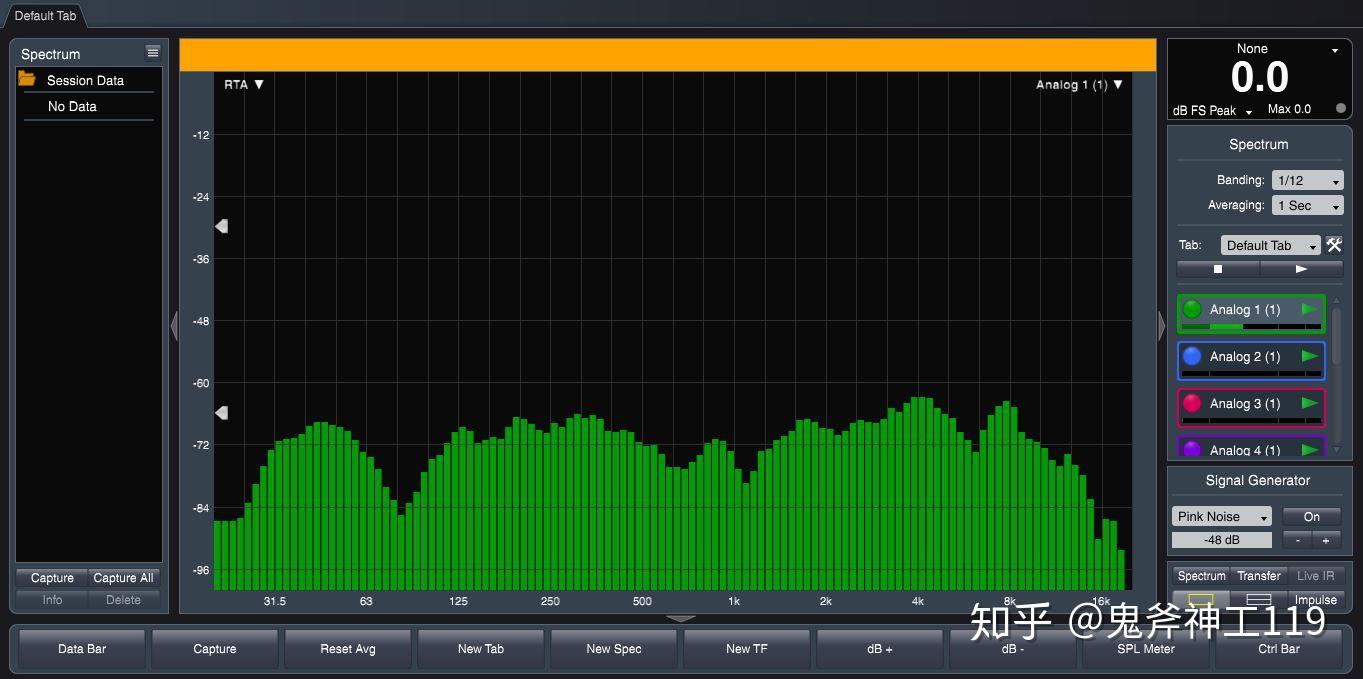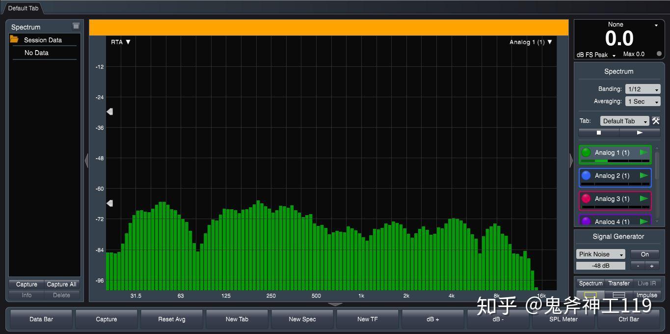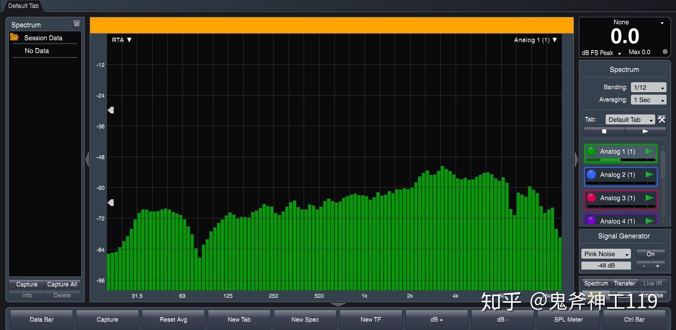 房间本地噪声使用多个监听音箱播放pink noise,但是由于我家境贫寒的原因,监听音箱我没有校准,所以pink noise的绝对值仅供参考,就像上面所说,只要看相对差值就好。