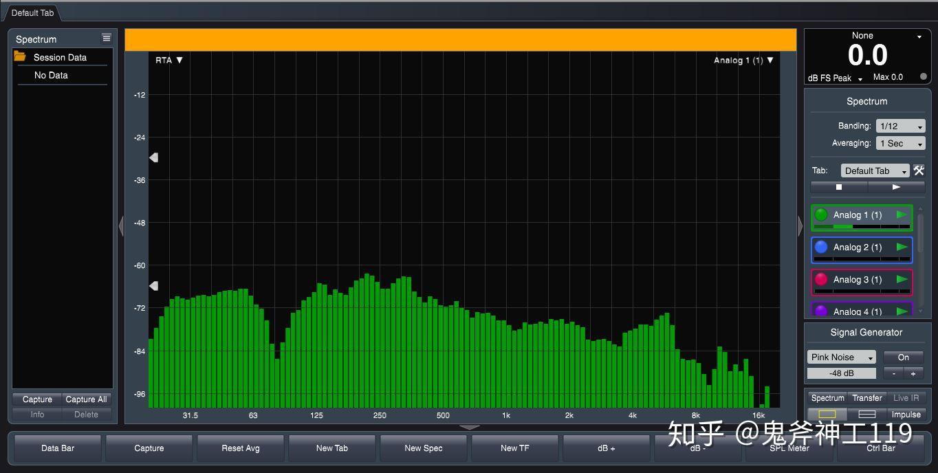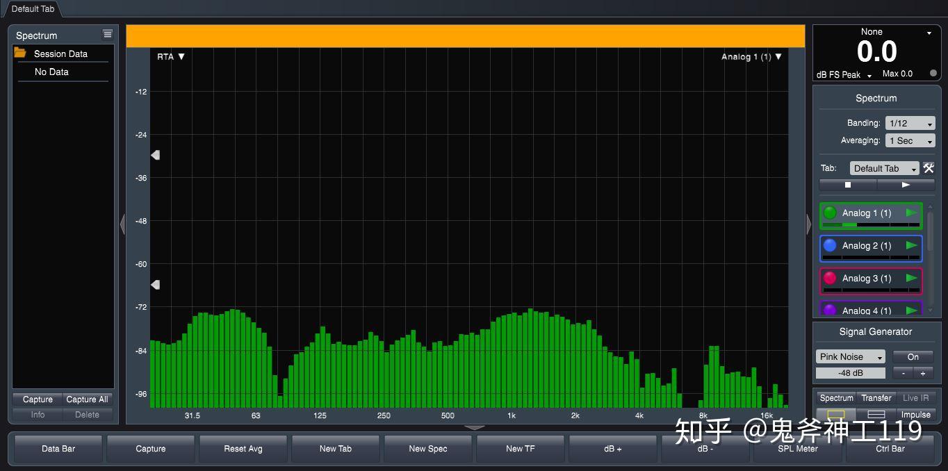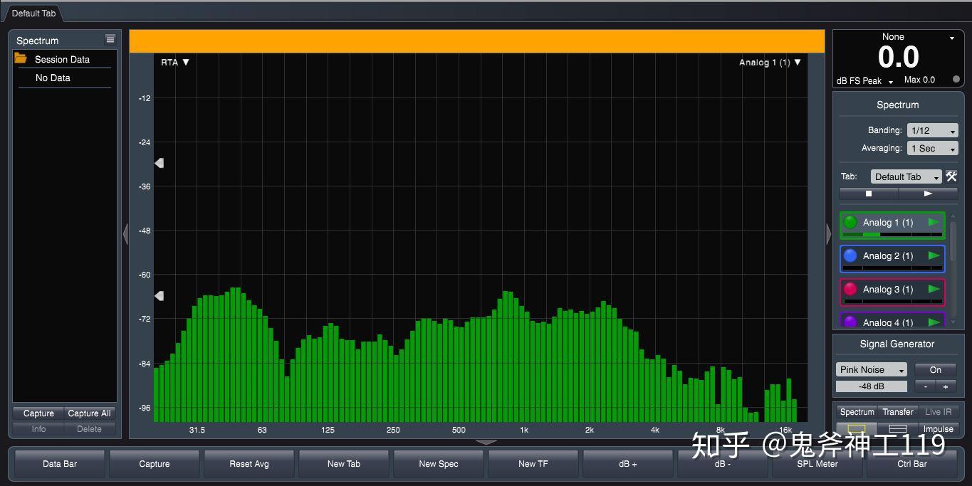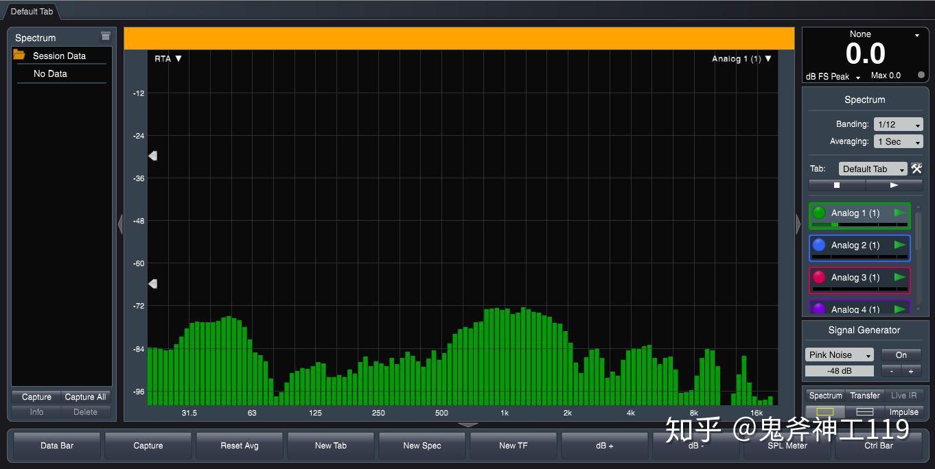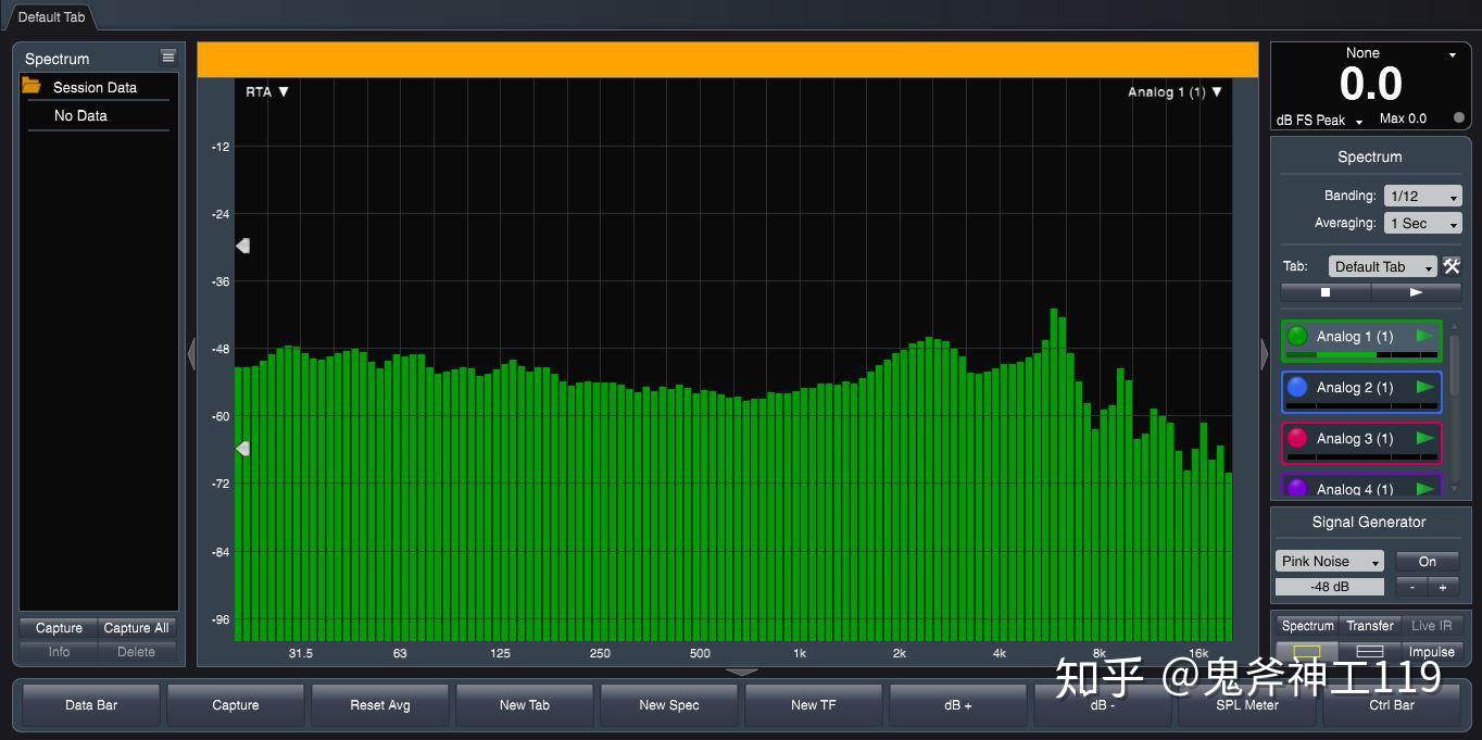 房间本地噪声使用多个监听音箱播放pink noise,但是由于我家境贫寒的原因,监听音箱我没有校准,所以pink noise的绝对值仅供参考,就像上面所说,只要看相对差值就好。