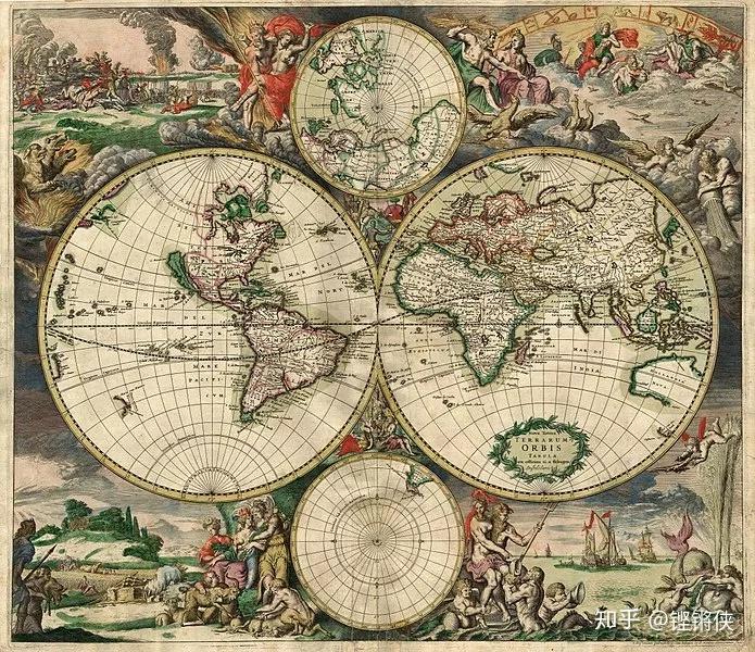 ▍橘子皮无法展开成平面早期绘制地图的绘图师就会遇到这个问题,怎么把地球画出一张平面的世界地图呢?最朴素的绘制方法就是按照我们肉眼看到的样子绘制球体,画成双球世界地图。