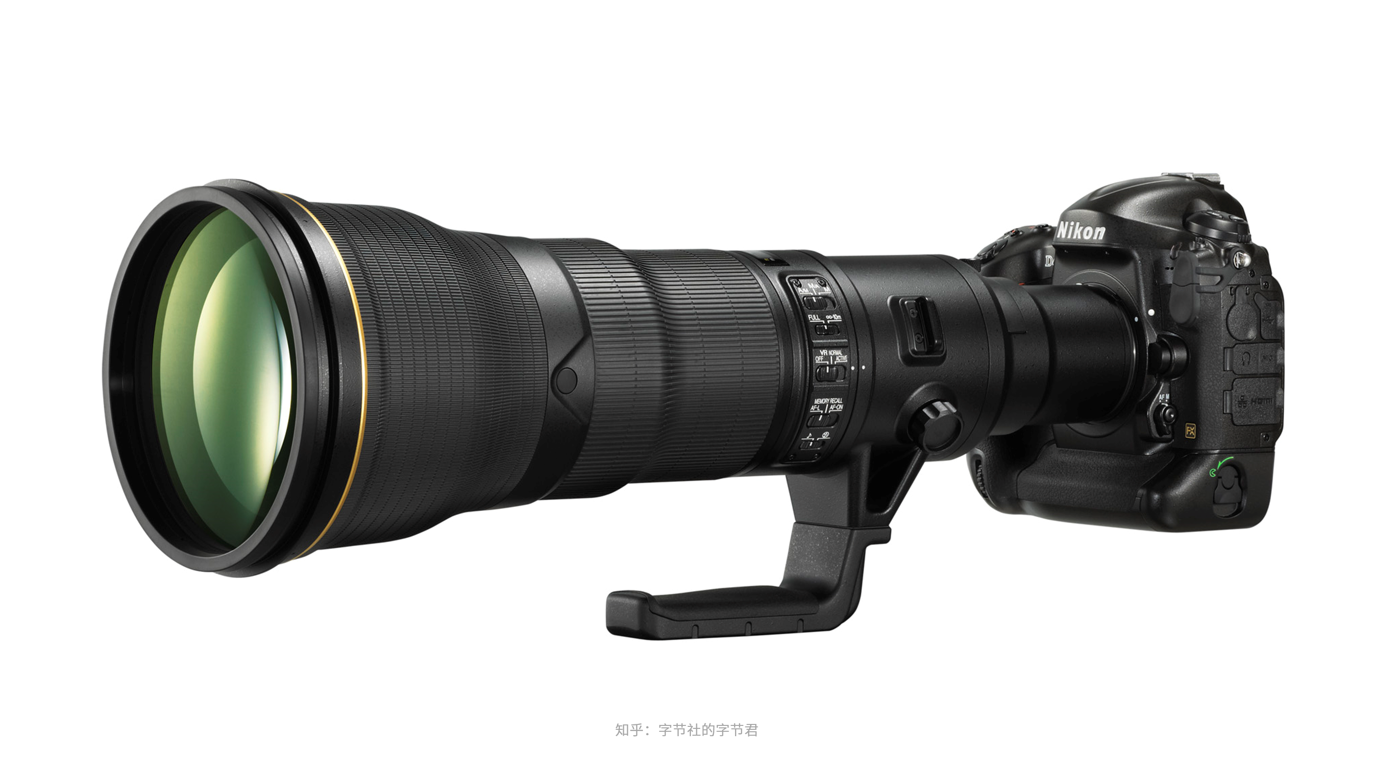 有说法是 NASA 在测试时候发现佳能的大尺寸萤石玻璃会在火箭发射时有一定概率碎裂,这种可靠性风险对于航天来说是完全不可接受的,因此选定尼康作为唯一静态指定器材,目前在国际空间站上的静态相机也几乎都是尼康相机。同时,因为 SuperED 更好的抗温变性能,尼康才能大胆地使用吸热更严重的黑色作为镜身材料,不然体育赛场边真的就要清一色白炮了。