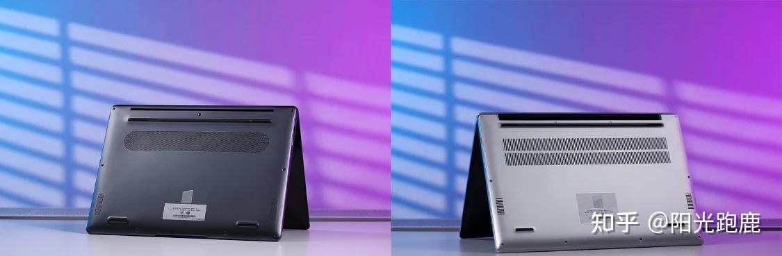 性能的高效稳定发挥当然还离不开优秀的散热,Hi MateBook系列均搭载的鲨鱼鳍双风扇散热系统,可以在低噪的同时给硬件带来非常优秀的散热性能。(下图分别为14和16的D面,前者散热孔相对圆润,后者相对方正)