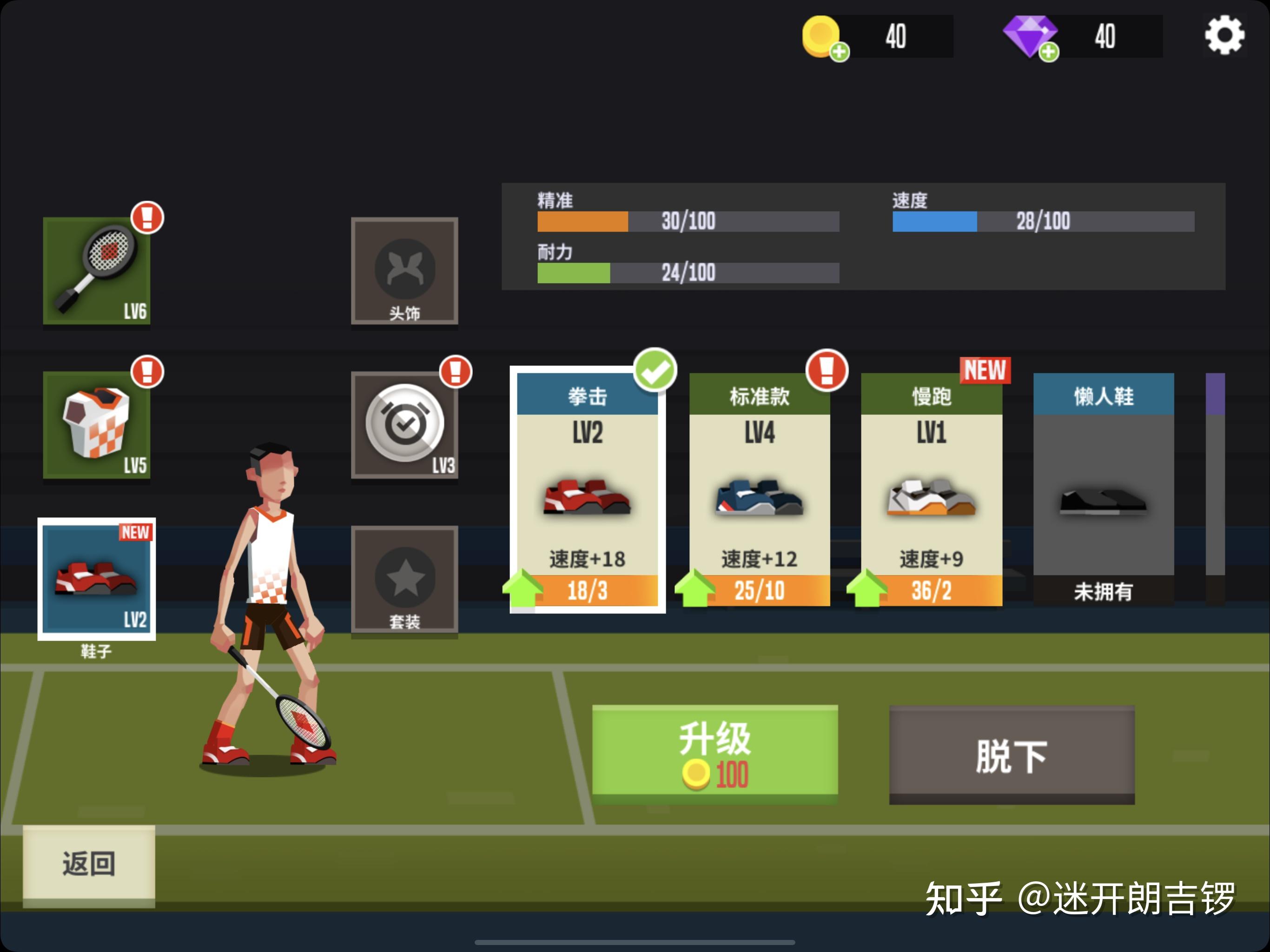 装备对应的能力就三种:拍子-精准度;衣服-耐力;鞋子-速度。