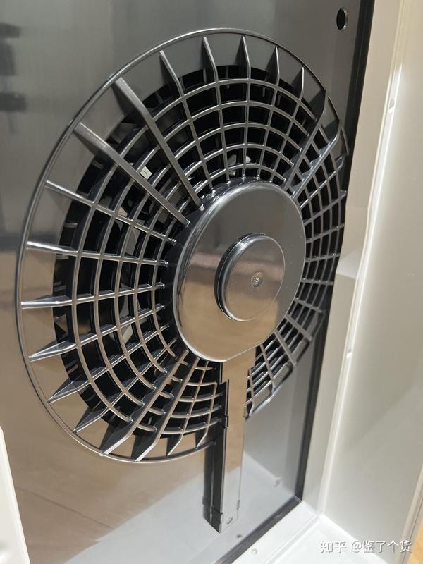 两侧进风,顶部出风设计。进风口侧设计有提手凹槽,方便搬运。但底部有静音万向轮,多数时候推着走进行。