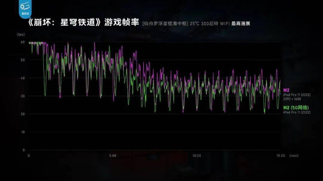 我们还测试了一下iPad Pro的5G性能,我们用5G又跑了一次最高画质的仙舟罗浮,发现平均帧从41帧降低到了39帧,这个差别和iPhone的5G比起来小太多了,毕竟iPad机身大、主板大,看来5G还是在iPad上用最香啊。
