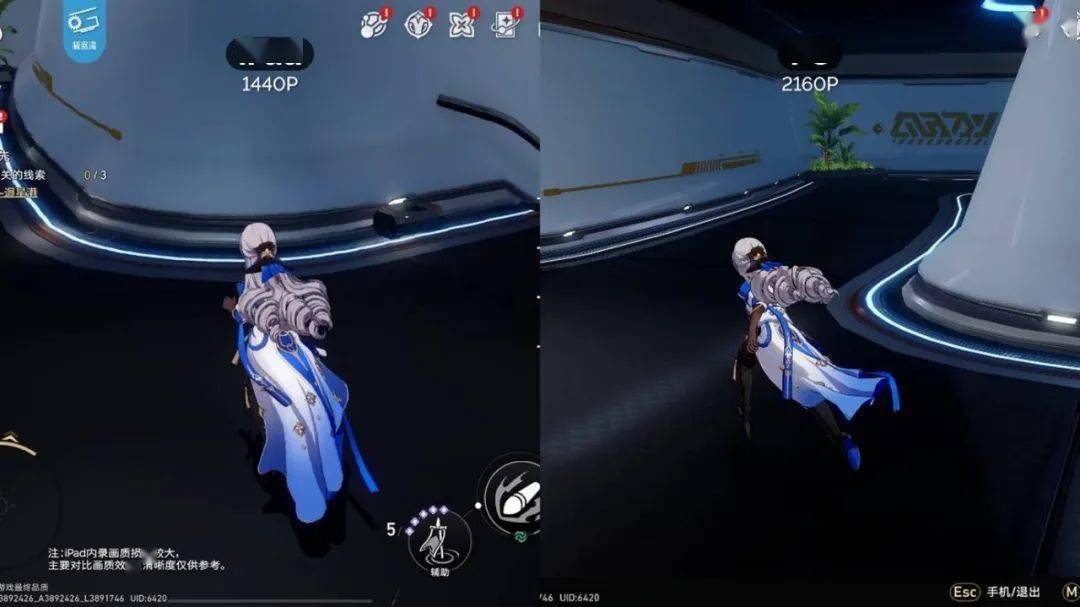 分辨率方面,星穹铁道有一个特别好的地方,就是游戏内拍照出来的图分辨率直接就是游戏的渲染分辨率,所以这次我们可以直接看到准确的具体分辨率了,不再需要数锯齿魔法了。