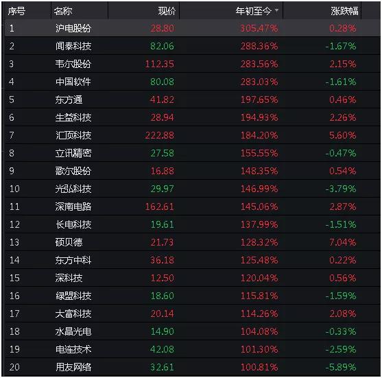 而从产业链相关个股表现看,不少概念股年内涨幅更是惊人。据基金君初步统计显示,年内多达20只华为产业链个股涨幅已经翻倍,其中最高涨幅个股已经超过300%。
