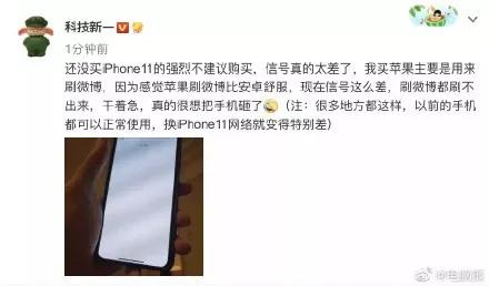 值得一提的是,有部分拿到iPhone 11的用户在社交媒体上表示,手机在使用时有发热、信号差等问题。