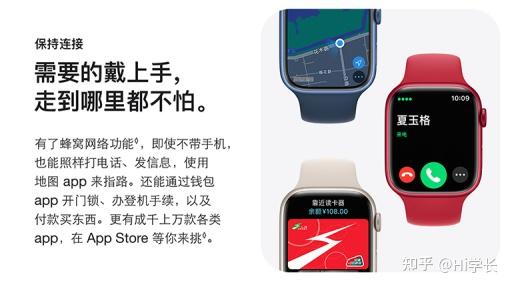全系内置蜂窝网络功能,可以直接在手表上打电话、发信息、在线播放音乐等(脱离手机也可以独立完成很多功能);