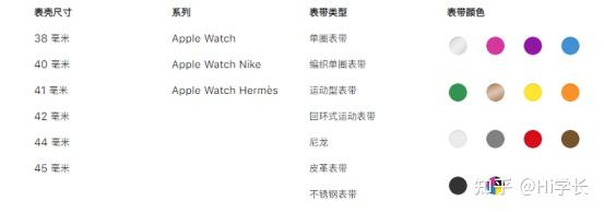 Apple Watch系列表盘以方形为主,可以显示更多有效信息,下图是相关参数表: