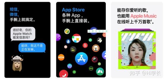 2.丰富的应用功能。Apple Watch支持众多第三方应用下载,可以在线播放音乐,更为国内用户关注的是它支持微信消息查看和回复(语音回复/表情包回复/语音转文字/快捷回复),独立性更高,整体生态体验更好。虽然回复效率比不上手机,但是有总比没有好。