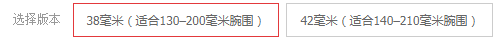 (1)表壳尺寸大小目前苹果智能手表在售的表壳尺寸有:38毫米、40 毫米、41毫米、42毫米、44毫米、45毫米这六种尺寸;以42毫米为界限,低于42毫米以下的称为小表,超过42毫米的称为大表;小表适合手腕比较细的女士选择,大表更适合手腕比较粗的男士选择。