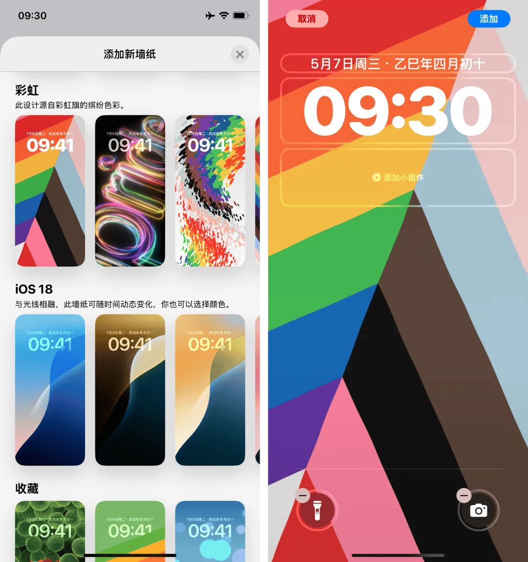 这套彩虹壁纸经过特别的设计,在解锁时可以看到联动效果
