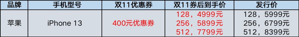 iPhone13天猫双11苹果惊喜券,支持满减优惠500元!到手价4699元起!