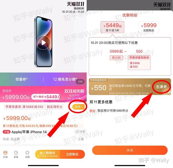 由于有知友反馈京东的优惠券经常提示抢不到,这次双十一推荐在天猫官方旗舰店入手iPhone14。