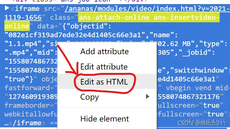 ③鼠标移动到目标代码上,右键点击“Edit as HTML”