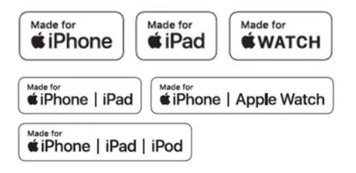 本次比较试验的20款产品中,有8款样品输出接口为Lightning(闪电)接头的数据线。其中,苹果原装线无要求MFi认证标识,但苹果公司对非原装线则要求通过MFi认证,并在外包装上体现如下认证标识: