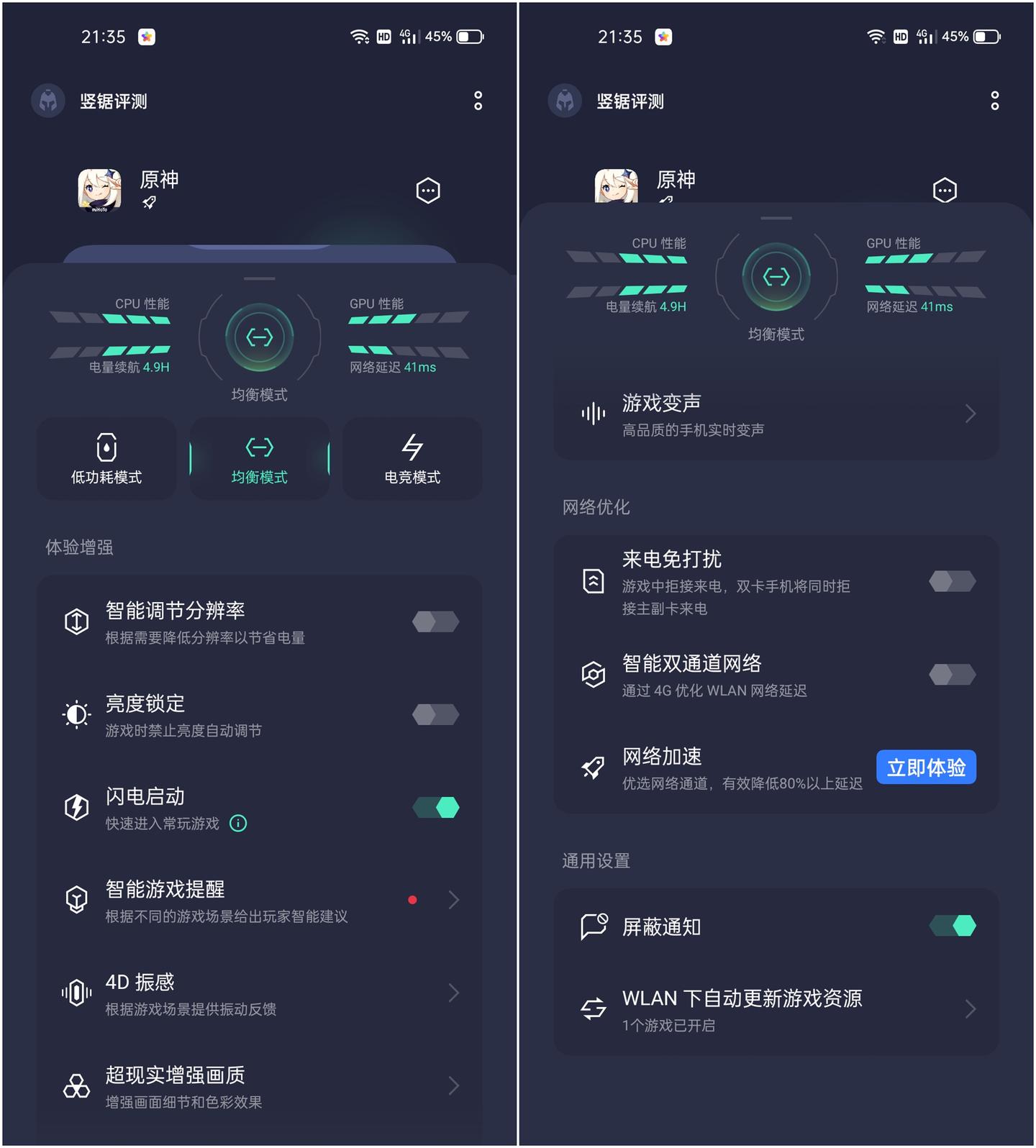 而“游戏空间”这个功能的作用就是进一步提升玩游戏的体验,例如:玩游戏时的手感调节(触控灵敏度,跟手性)、自由调整玩游戏时的手机性能模式等。