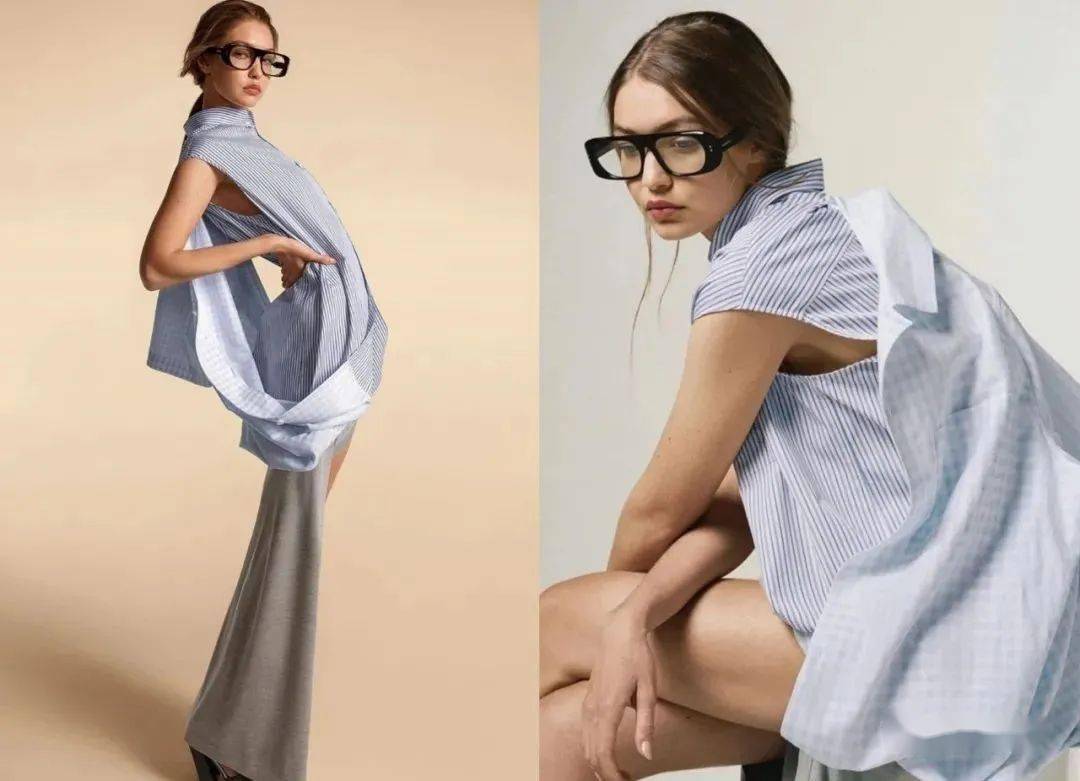 前段时间,Gigi在拍摄Burberry春夏广告大片的时候,戴了一副造型复古的眼镜,让人过目难忘↓