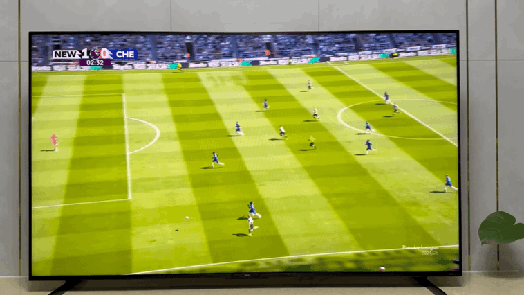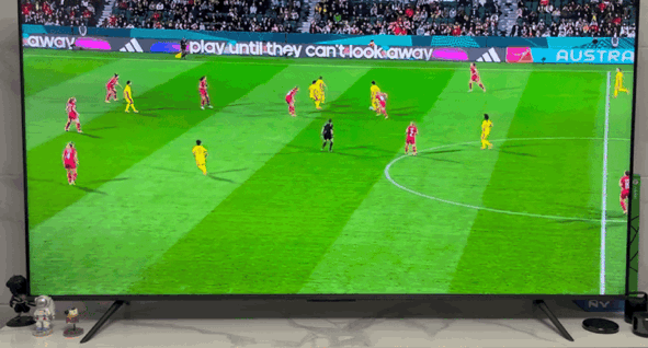 电视是从接口、芯片、 屏幕、算法全链路 4K 144Hz的高刷解决方案。消除画面中的卡顿、拖尾现像,带来更流畅的观感。通过对前几天的女足世界杯中国女足VS丹麦女足实际运动画面的观察,我们可以明显看到,其运动轨迹清晰自然,没有卡顿以及运动拖尾的情况出现。