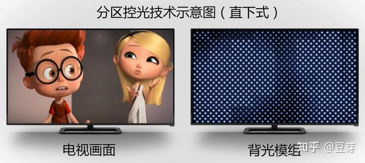 控光分区电视如果没有分区,电视中的背光源的光就只有全部打开或全部关闭,这就会导致当电视呈现黑色画面时会有泛白的情况,会直接影响电视成像效果。为了为大家提供成像效果更好的电视,比如某款电视的控光分区数达到了330。控光分区达到了330简单理解就是将背光灯分隔为330个小单元,每个小单元可以单独控制,各个单元之间不会相互干扰,以点光源,代替了面光源,精细控制电视不同小区域的亮度。