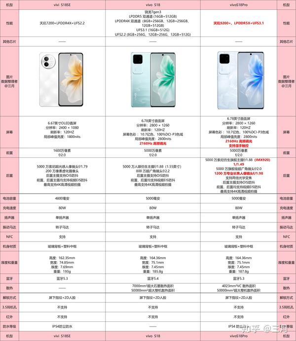 vivoS18Pro作为超大杯,这台手机升级的点是处理器性能和影像能力,主要区别如下